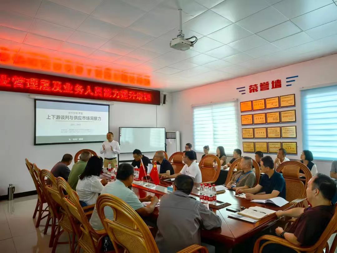 為了提升業(yè)務(wù)人員在復(fù)雜市場環(huán)境下的談判技巧和市場洞察力,以更好地服務(wù)客戶,應(yīng)對各種“困難場景”談判。公司于7月19日,組織了一場題為“上下游談判與供應(yīng)市場洞察力”的談判技能培訓(xùn),參加培訓(xùn)學(xué)習(xí)人員為公司全體高管及采購、銷售業(yè)務(wù)人員,邀請業(yè)內(nèi)商業(yè)談判、采購與供應(yīng)管理實(shí)戰(zhàn)專家湯曉華授課。