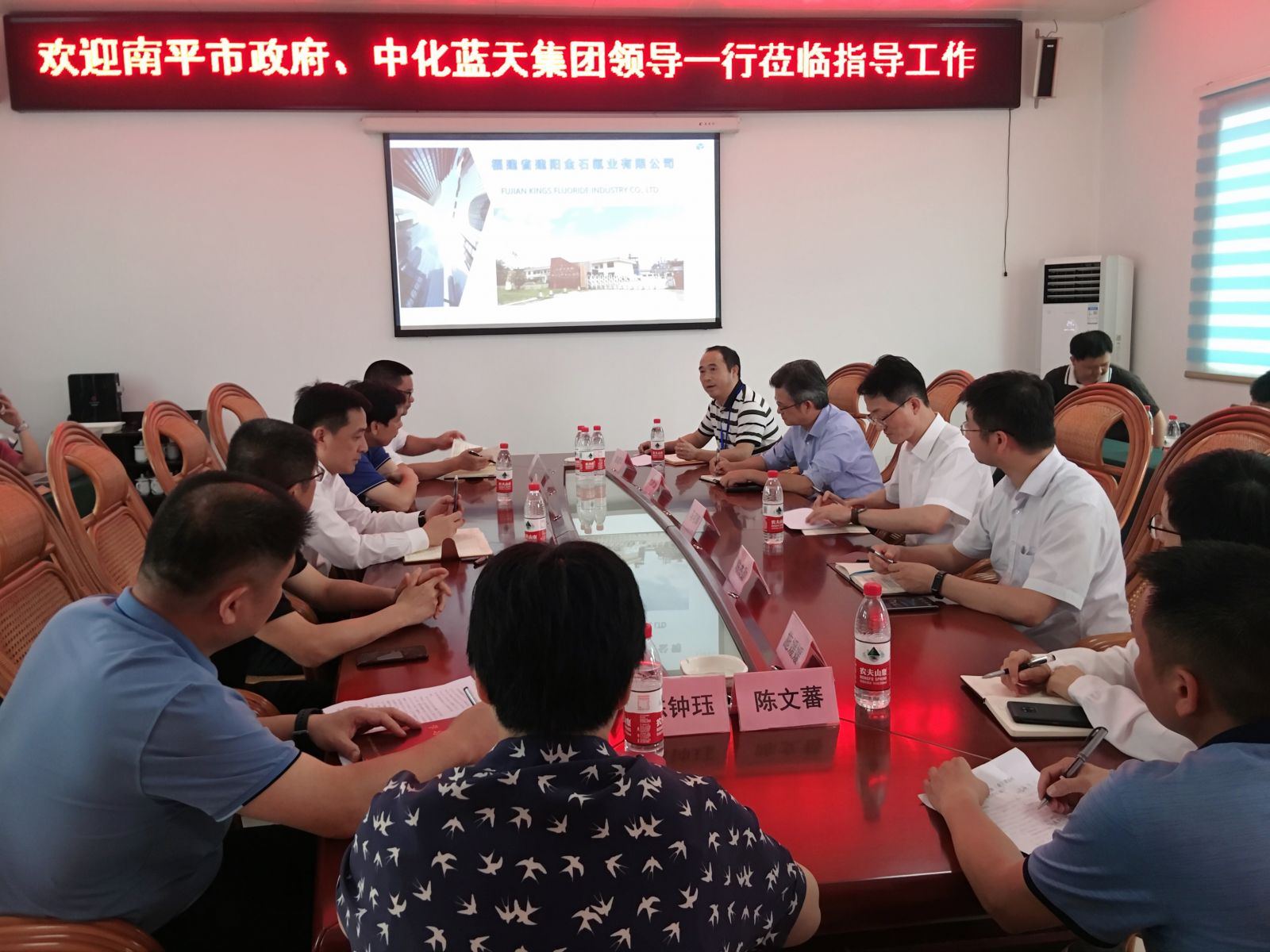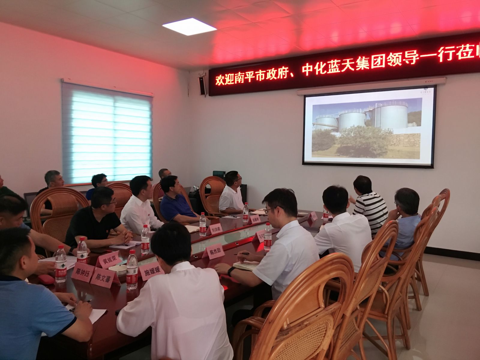 2020年6月8日下午,南平市長(zhǎng)劉洪建一行、中化藍(lán)天董事長(zhǎng)、黨委書記、總經(jīng)理馬可輝一行蒞臨公司考察并座談。