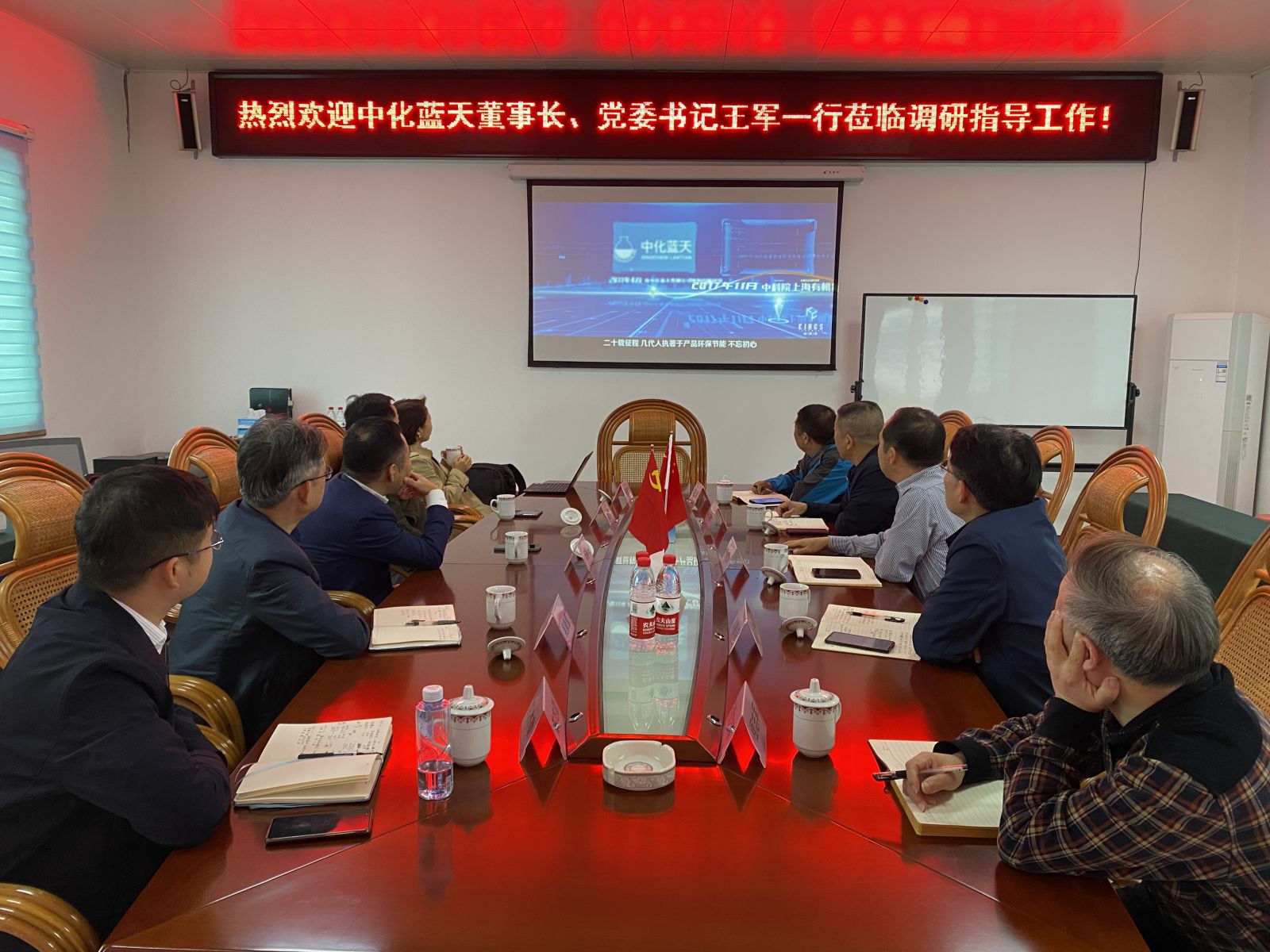 2021年11月3日,公司股東中化藍(lán)天董事長兼黨委書記王軍、副總經(jīng)理吳康慧等一行5人蒞臨我司調(diào)研指導(dǎo)工作。金石氟業(yè)董事長總經(jīng)理陳建華,金石礦業(yè)總經(jīng)理李仁輝及中化藍(lán)天派駐領(lǐng)導(dǎo)洪惠能、程志軍等陪同參加。